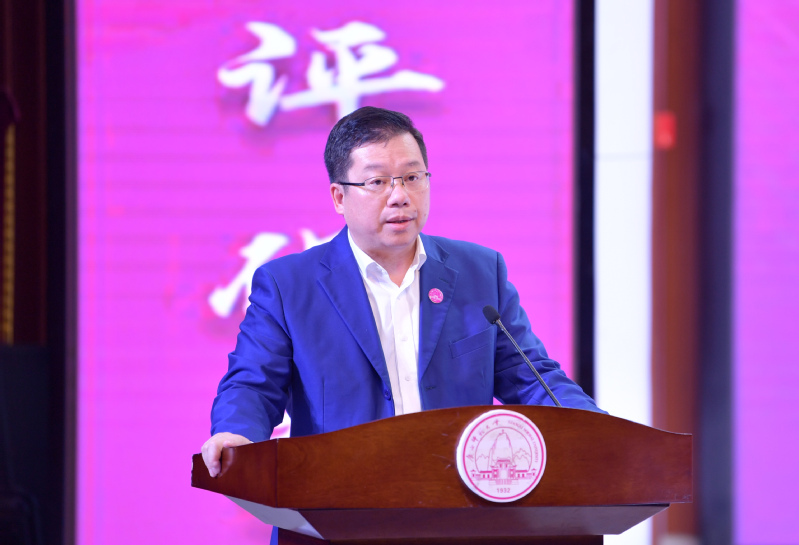教育部审核评估专家组副组长、南宁师范大学校长李传起主持会议
