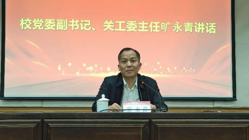4月18日,我校在育才校区图书馆一楼报告厅召开2023年关工委工作会议,表彰关心下一代工作先进集体和先进个人,全面总结学校2022年关工委工作,部署2023年关工委工作。校党委副书记、校关工委主任旷永青出席会议并讲话,会议由校党委常委、宣传部部长汤志华主持。