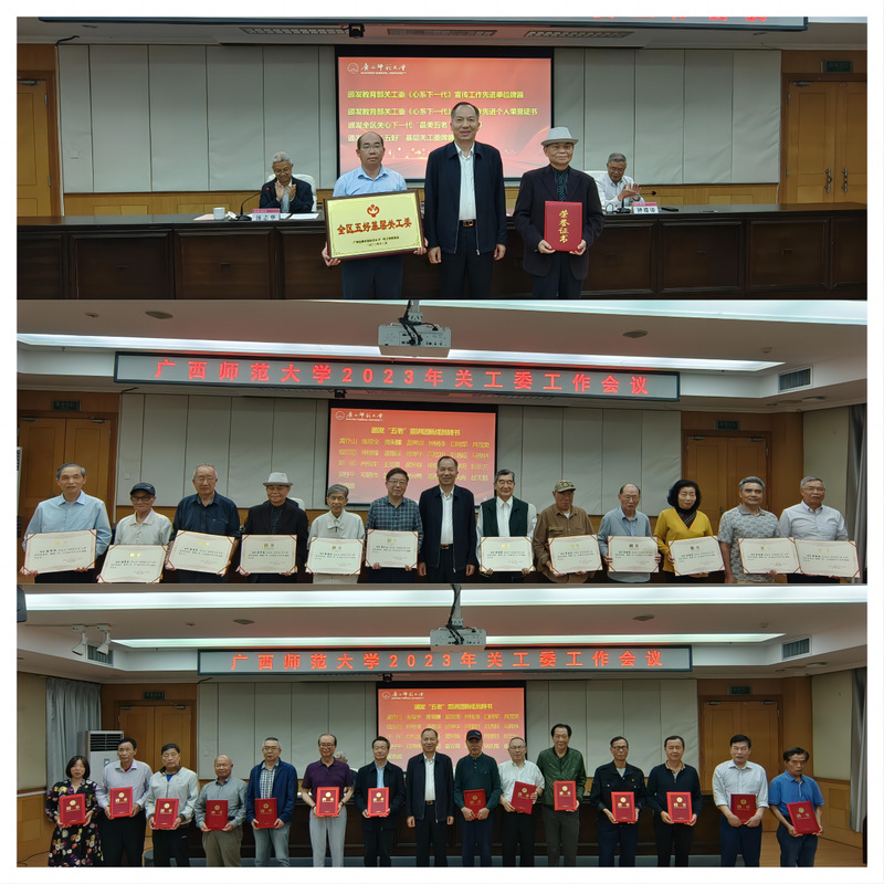 旷永青代表学校党委向受到表彰的先进集体和先进个人表示热烈的祝贺,向为关工委工作付出辛勤努力、取得突出成绩的老领导、老教师、老同志和广大教职员工表示崇高的敬意和衷心的感谢。他充分肯定了近十年来以蓝常周同志为主要代表的上一届关工委成员不顾年高、不辞辛劳、不计名利,热心工作,在青年师生思想政治教育、理想信念教育、师德师风建设、帮助青年学生健康成长成才等方面付出的心血和作出的贡献。他希望新一届关工委成员接好“接力棒”,找准新坐标,明确聚力点,完善新举措,以小切口展现大视野、彰显大情怀、做好大文章,站在确保党的事业薪火相传、后继有人的战略高度,急党政所急、想青年所需、尽关工委所能,在践行为党育人、为国育才的初心使命中彰显新担当、展现新作为、干出新业绩。
