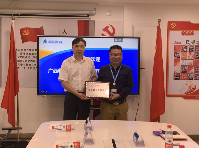 校党委常委、副校长黄文韬代表学校授予卓越教育集团“就业育人共建单位”牌匾