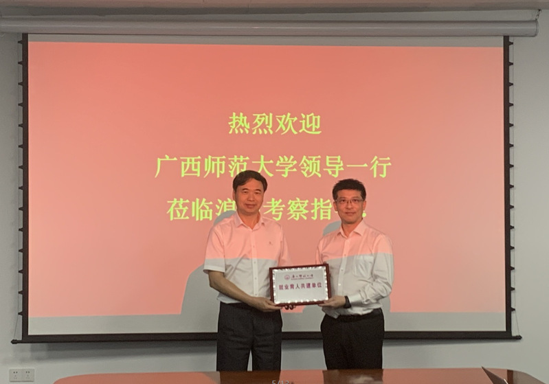 访企拓岗第二站前往浪潮电子信息产业股份有限公司广东区,与浪潮电子信息产业股份有限公司广东区副总经理陈逸聪、我校校友浪潮信息广西区云装备渠道部总经理张永峰等进行了座谈交流。黄文韬感谢浪潮信息公司对广西师范大学发展给予的关心和帮助,随后对学校基本情况进行简要介绍,并表明此次走访希望能够在学生就业、产教融合、干部培训、实习实训等方面有进一步的合作交流机会,从而推动校地校企深度合作,促进我校毕业生高质量充分就业。最后黄文韬副校长代表学校授予浪潮信息公司“就业育人共建单位”牌匾。