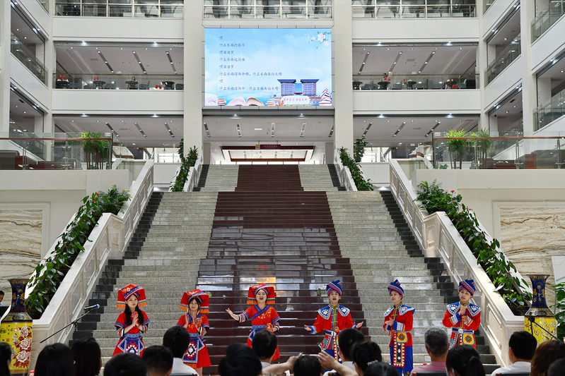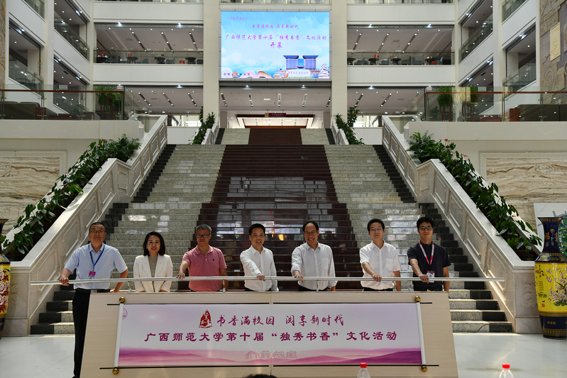 为进一步贯彻落实党的二十大精神,扎实开展学习贯彻习近平新时代中国特色社会主义思想主题教育,深入推进全民阅读,营造书香校园,4月20日,在第28个“世界读书日”到来之际,广西师范大学第十届“独秀书香”文化活动开幕式在雁山校区图书馆举行。校党委常委、组织部部长林国庆出席开幕式并讲话,党办、校办、党委宣传部、学工(部)处、研工部、校团委、创新创业学院、各学院(部)相关负责人、图书馆馆员代表、各学院师生代表参加了开幕式。