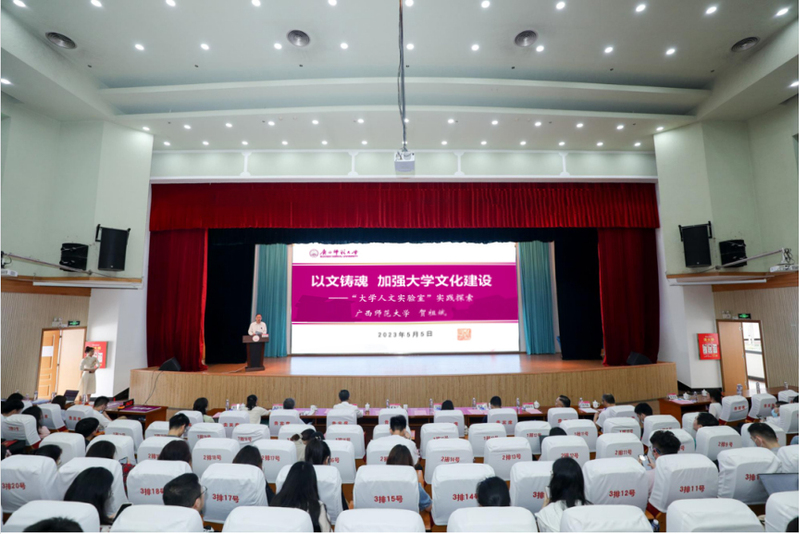 为深入贯彻落实党中央、自治区和学校党委工作部署,高标准高质量推动主题教育走深走实,教育引导全校学工干部全面学习、深刻领会、准确把握习近平新时代中国特色社会主义思想,5月5日,校党委副书记、校长贺祖斌在育才校区田家炳教育书院报告厅为全体学工干部讲授题为《创设“人文实验室”,加强大学文化建设》的专题党课。