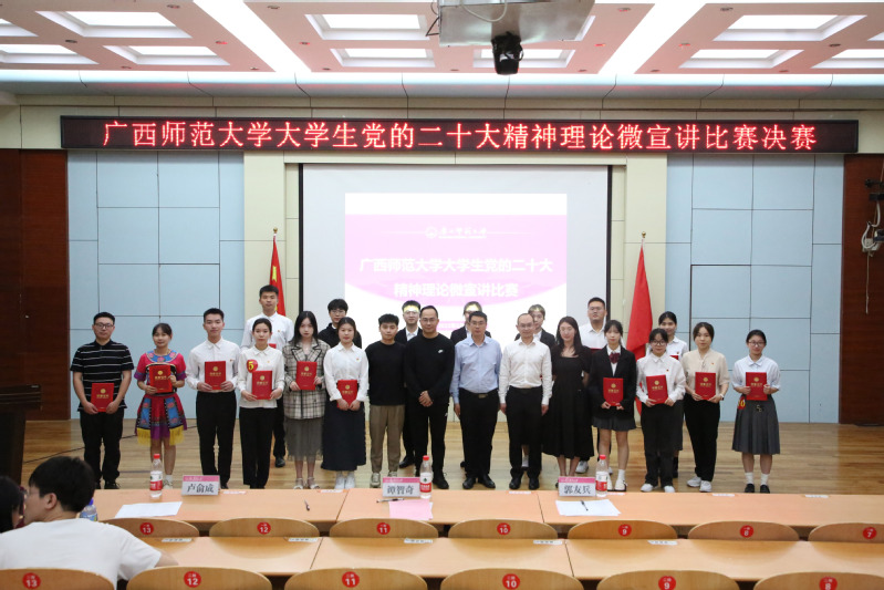 本次大学生党的二十大精神理论微视频宣讲比赛的顺利举办,有利于在全校营造浓厚的党的二十大精神宣传贯彻氛围,做到以赛促学,以赛促优,切实推动党的二十大精神在全校范围内、在青年心中落地生根。不断激励广大青年大学生将砥砺前行,接续奋斗,坚定不移听党话,跟党走,为奋力谱写中国式现代化广西篇章贡献师大智慧和力量。