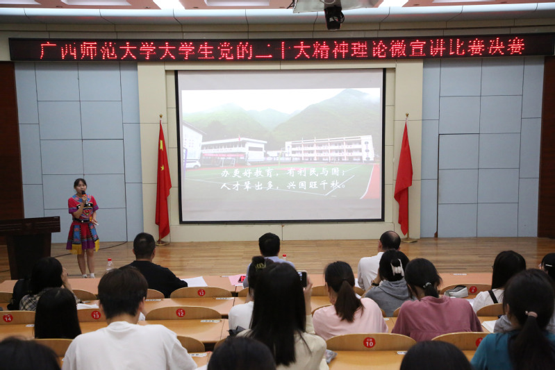 经过各二级学院(部)的初赛,共有20名选手入围校级决赛。决赛中,20名参赛选手依次上台进行理论微宣讲。四号选手的《扬帆起航新征程,时代青年勇担当》强调当代青年生逢其时,施展才干的舞台无比广阔,实现梦想的前景无比光明,应把小我融入到祖国的大我、人民的大我之中。十一号选手的《启智润心话使命,培根铸魂育新人》从乡村支教的具体现状入手,表明党和政府要加快教育均衡发展,优化区域教育资源配置,促进教育公平,推动建设教育强国。二十号选手的《用山歌唱响党的二十大,与青年赴约新时代》独具民族特色,用山歌的形式唱响党的二十大精神,呼吁广大青年扎根八桂大地建设新时代中国特色社会主义壮美广西。