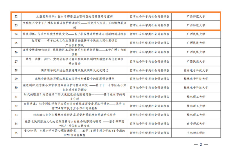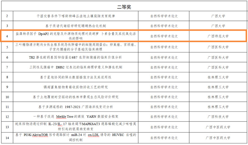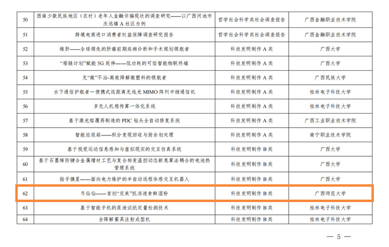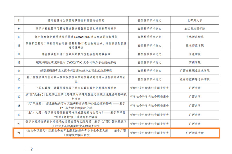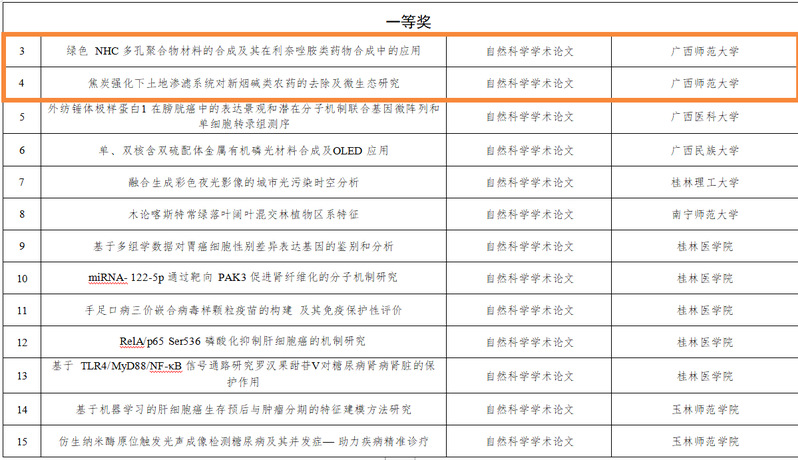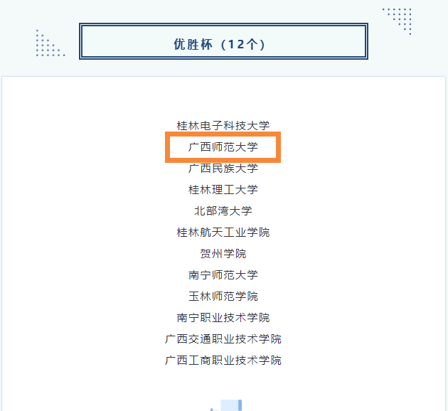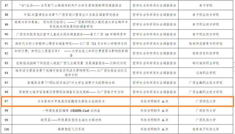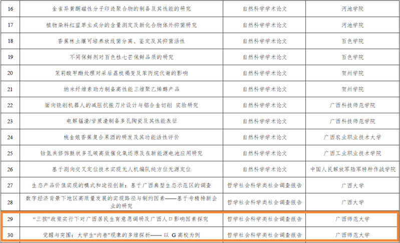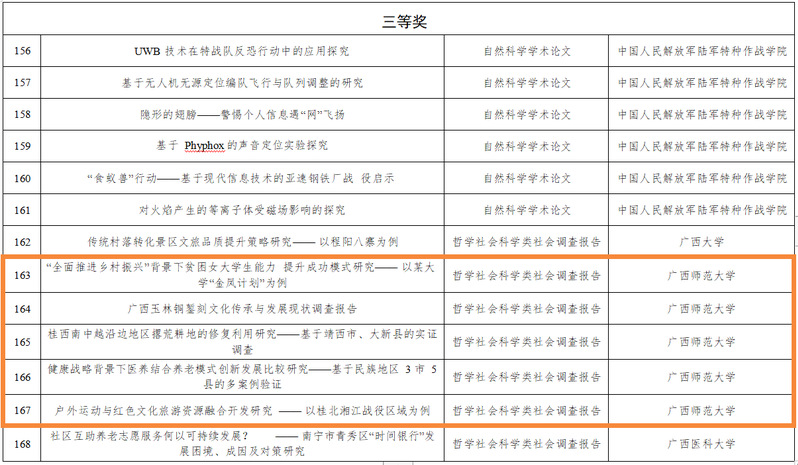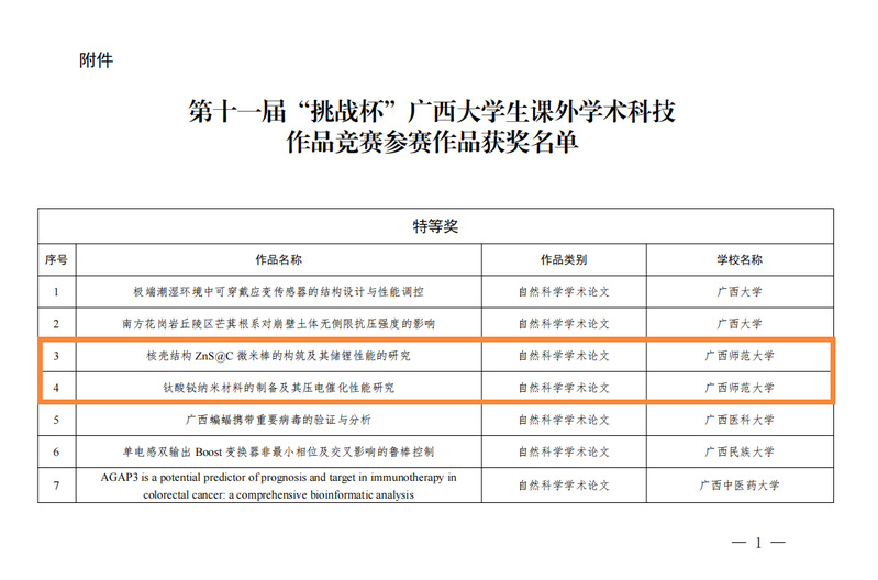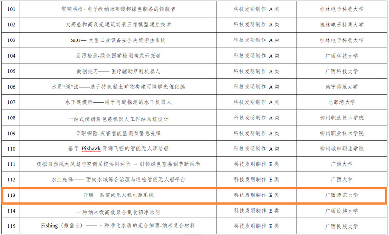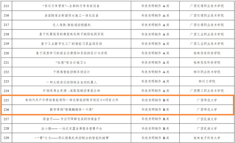 近日,由共青团广西区委、自治区教育厅、自治区科协、广西学联主办的第十一届“挑战杯”广西大学生课外学术科技作品竞赛结果正式公布。经过激烈角逐,我校在比赛中荣获佳绩,取得特等奖6项、一等奖8项、二等奖11项、三等奖5项,获奖数量位居全区前列,学校荣获优秀组织奖和优胜杯。其中4个作品进到国赛。
