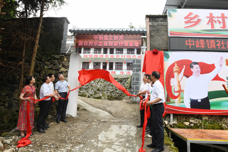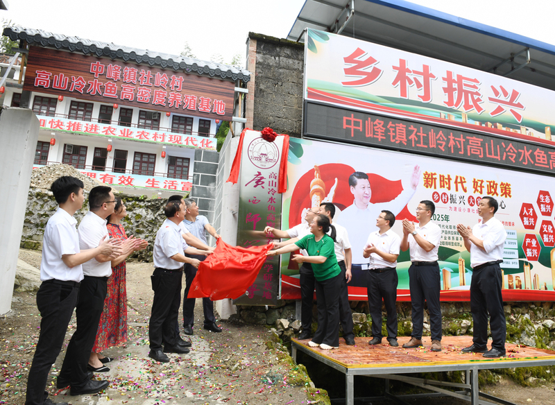 共同为社岭村高山冷水鱼高密度养殖基地揭牌