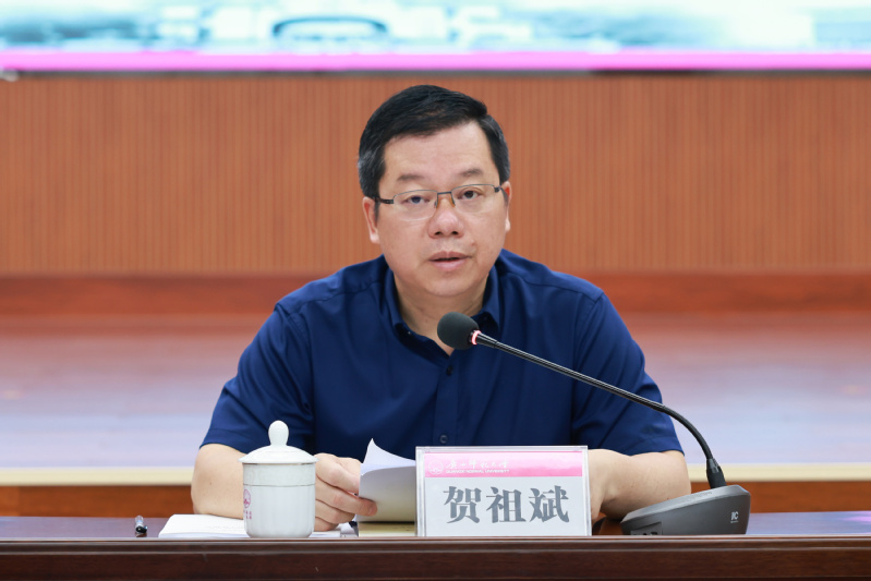 贺祖斌强调,各学院部、各单位要切实把学习贯彻成果转化为推动人才培养、学科建设、科学研究、文化传承创新、国际交流等方面高质量发展的具体举措、实际行动,以优异成绩迎接学校第十二次党代会胜利召开!
