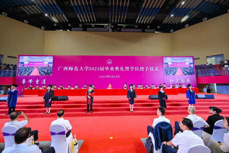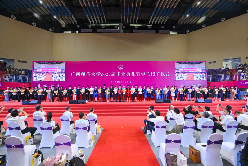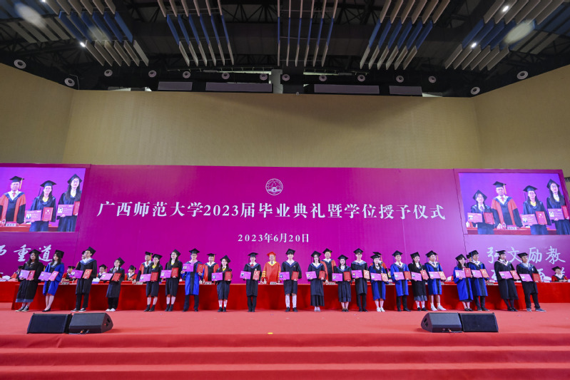 盛夏毕业骊歌起,师大学子启新程。6月20日上午,广西师范大学2023届毕业典礼暨学位授予仪式在雁山校区综合体育馆举行,共同见证又一批青春学子从师大,向远方。