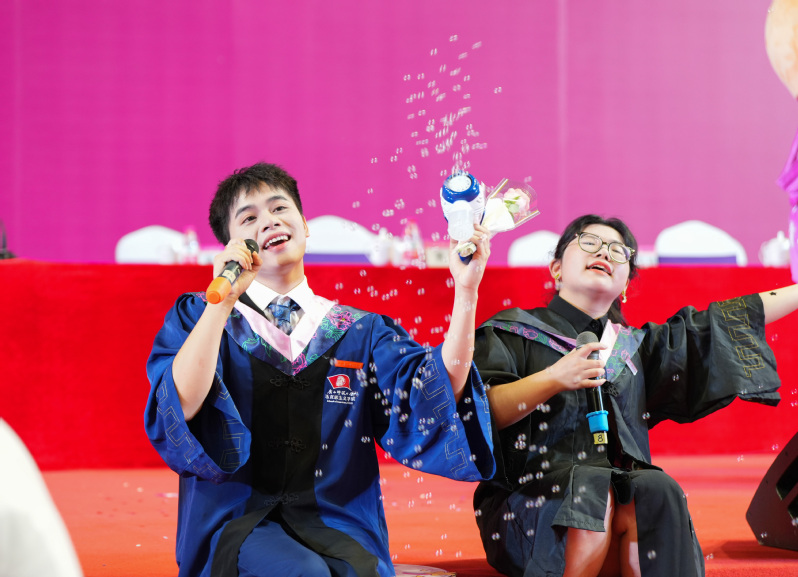 本次典礼由学校融媒体平台进行联合直播,逾10万毕业生、亲友、校友等社会各界嘉宾在线观礼。校党委副书记、校长贺祖斌等全体校领导为毕业生代表拨穗,赠送毕业生纪念品。校党委副书记旷永青主持仪式。