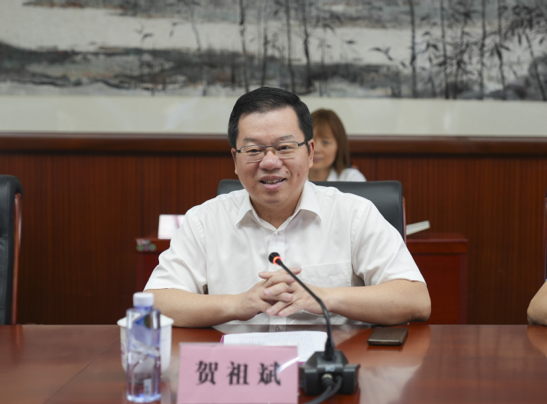 贺祖斌代表学校对北京崇学文化发展有限公司的慷慨捐赠表示感谢,并简要介绍了学校发展情况。他表示,在全国上下开展主题教育之际,能够获赠多语种《习近平谈治国理政》图书对于学校具有重大的意义,是非常珍贵的财富。他指出,《习近平谈治国理政》多语种图书不仅丰富了我校图书馆馆藏资源,同时对把习近平新时代中国特色社会主义思想融入人才培养全过程、提高人才培养质量、增强国际交流与合作具有深远影响。希望全校党员领导干部和师生,珍惜和利用好这批宝贵的文献资料,认真学习贯彻以习近平同志为核心的党中央提出的一系列治国理政新理念新思想新战略,持续学思践悟《习近平谈治国理政》,不断提升传播中国声音、讲好中国故事、展现中国智慧的能力。
