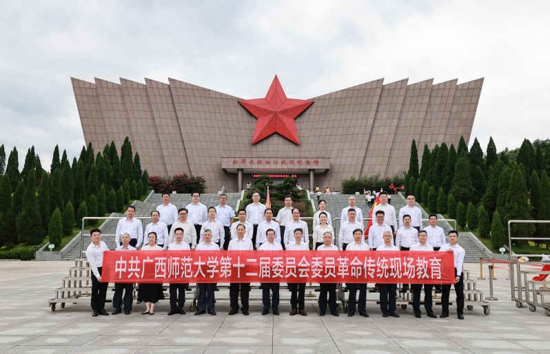 7月7日,在学校第十二次党员代表大会胜利闭幕、选举产生中共广西师范大学第十二届委员会不到一周的时间,学校党委组织全体新一届党委委员专程来到全州,跟随习近平总书记脚步,重温中央红军在湘江战役中的悲壮历史,缅怀老一辈革命家的丰功伟绩,开展学校第十二届党委理论中心组第一次集体学习,及时跟进学习领会习近平总书记最新重要讲话精神,深入学习贯彻学校第十二次党员代表大会精神,赓续红色血脉、传承奋斗精神,坚定建设国际知名、教师教育特色鲜明的国内一流大学的理想信念和奋斗目标。