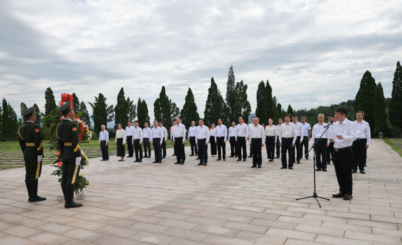 学校党委领导班子和新一届党委委员、第十二届党委理论学习中心组成员在红军长征湘江战役纪念园向红军烈士敬献花篮