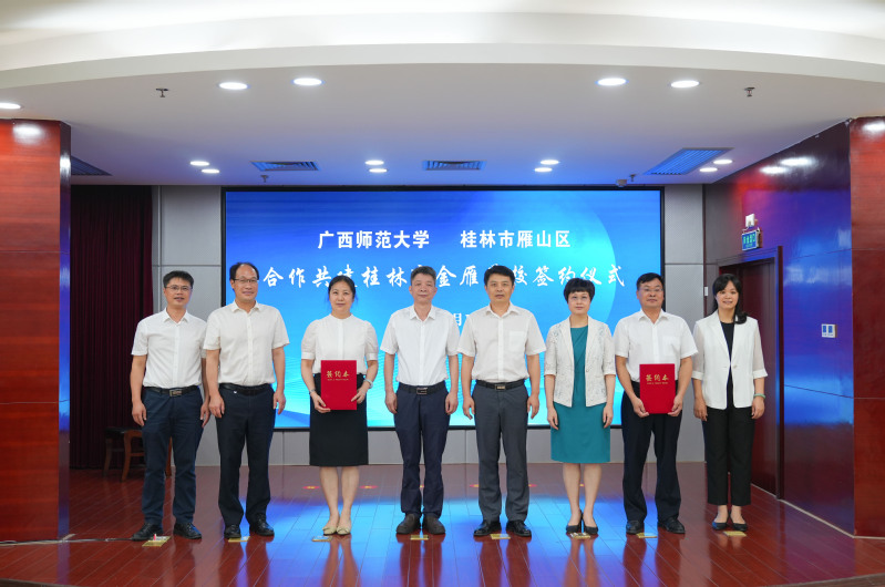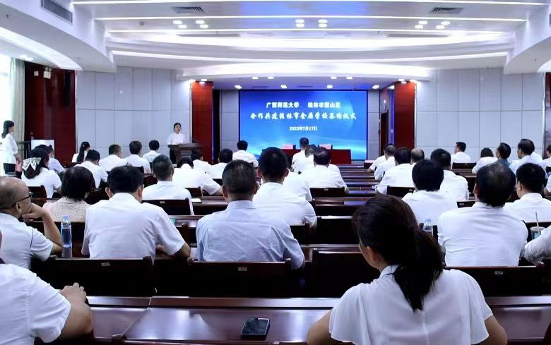 我校各学院(部)、各单位(含附属单位)主要负责人,雁山区副区长薛媛、区人大副主任提名人选张琴、区政协副主李剑鸿以及区各乡镇(街道)、区直相关部门负责人及辖区各中小学校长参加签约仪式。