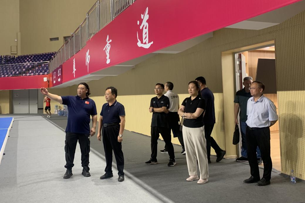 伍锦昌一行首先到综合体育馆检查健美操(啦啦操)项目集训情况和比赛场馆建设情况。健美操(啦啦操)项目主教练向检查组简要介绍了暑期集训备赛的相关情况,体育与健康学院负责人向检查组介绍了比赛场馆建设进度。随后来到训练馆二楼检查和了解排球项目集训情况,并于女排主教练亲切交谈,了解参训运动员和集训情况。最后,在综合体育馆召开了座谈会,健美操(啦啦操)项目筹备组向检查组详细汇报健美操(啦啦操)参赛队接待工作的方案,双方对下一步工作存在的问题和困难进行了交流和探讨。