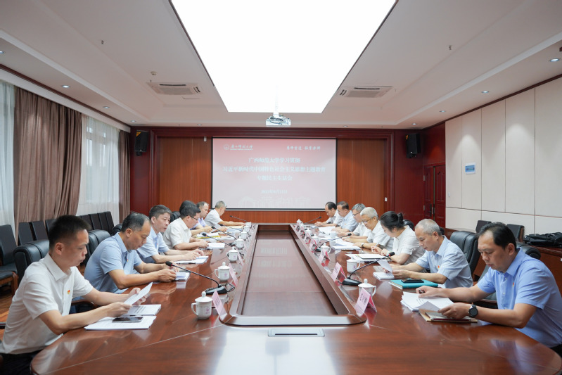 校党委书记贺祖斌主持会议。在家校领导孙杰远、旷永青、莫坷、林国庆、汤志华、黄晓昀、宋树祥、李先贤参加会议。自治区主题教育第十四巡回指导组组长、桂林电子科技大学党委副书记陈贵英到会指导并作点评讲话。指导组成员、自治区市场监管局二级巡视员苏彩和,以及校党委统战部、党办、校办主要负责人列席会议。