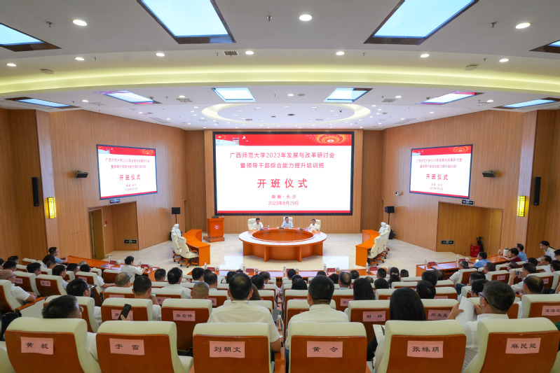 开班式上,校党委书记贺祖斌作动员讲话。他对湖南师范大学为本次培训班所作的精心安排和周到服务表达感谢,他指出,湖南师大和广西师大都是成立于上世纪30年代,同为抗日战争时期的6所国立师范学院之一,都是历经艰辛、奋发作为,与祖国同呼吸、与民族共命运,从小到大、从弱到强,为国家和地方作出了应有的贡献。两所学校志同道合、砥砺同行,始终保持着良好的合作关系。在90多年的办学历程中,两校之间弦歌相闻、往来频繁,在学科建设、人才培养、科学研究等方面开展了广泛交流和深入合作,共同培养出一大批杰出校友,在祖国大江南北,为强国建设、民族复兴建功立业。