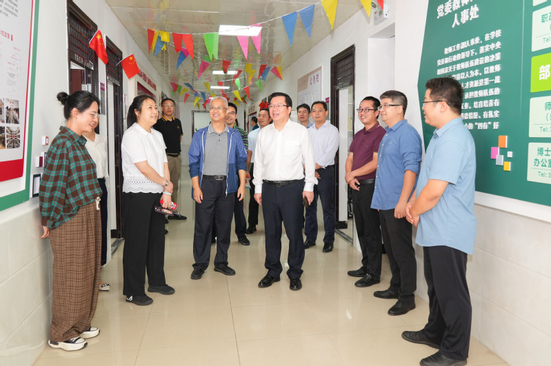 校党委书记贺祖斌、副校长汤志华、副校长黄晓昀一行实地走访机关部门