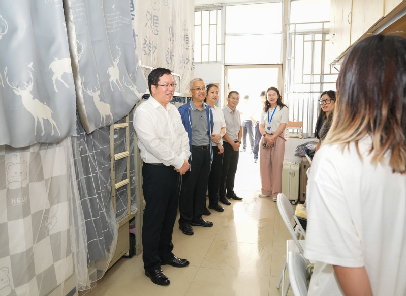 校党委书记贺祖斌、副校长汤志华、副校长黄晓昀一行实地走访学生宿舍