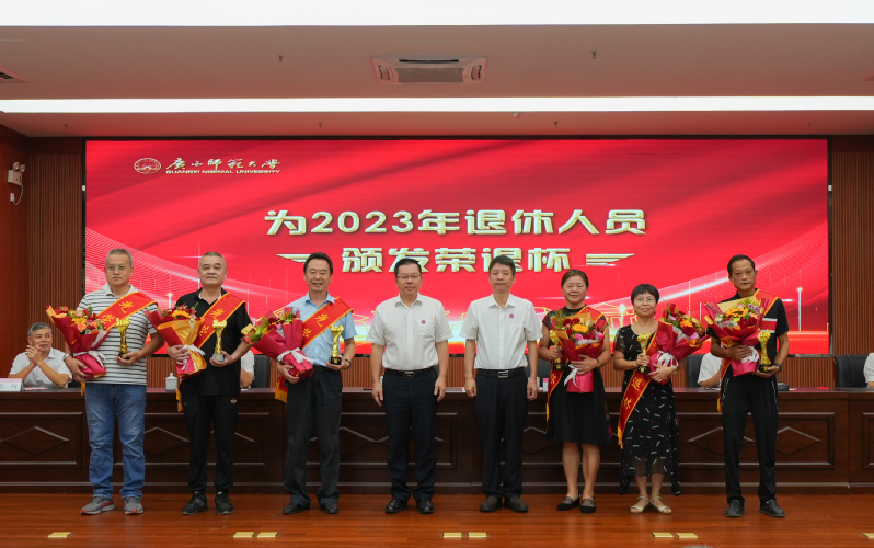 会上,校党委书记贺祖斌,校党委副书记、校长孙杰远共同为2023年退休人员颁发光荣退休纪念杯。贺祖斌为荣获第三批“全国高校黄大年式教师团队”、基础教育国家级教学成果奖二等奖、高等教育(研究生)国家级教学成果奖二等奖、国家社科基金教育学重大项目颁奖。孙杰远为荣获第六届全国高校青年教师教学竞赛文科组二等奖、第六届全国高校青年教师教学竞赛理科组三等奖、全国第三届教师教学创新大赛三等奖、2022年广西社会科学优秀成果奖一等奖、2022年广西自然科学奖一等奖以及2022年广西科学技术进步奖二等奖的教师颁奖。校领导集体为从教满30年的教师代表颁发纪念证书,为荣获学校第十四届“十佳青年”的教师颁奖,为获批第二批国家级一流本科课程团队代表颁奖。