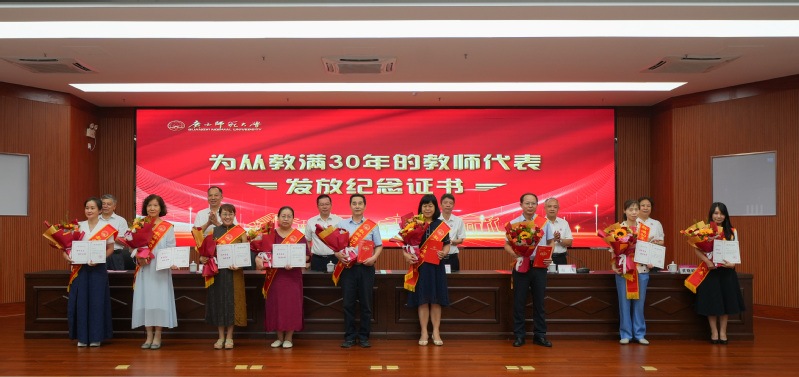 校领导集体为从教满30年的教师代表颁发纪念证书