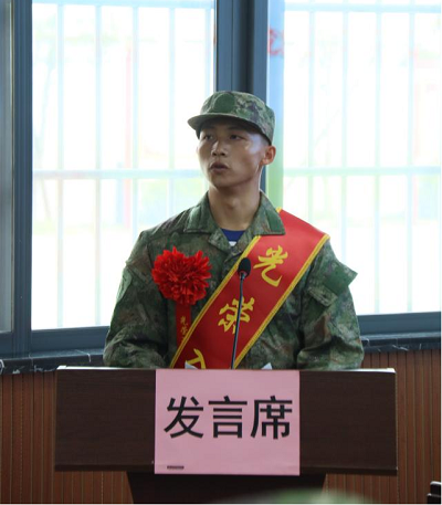 计算机科学与工程学院2019级计算机科学与技术专业符海强代表全体入伍大学生发言,他首先对学校领导老师前往欢送并与他们亲切交谈感到无比温暖与激动,感谢学校领导老师们的谆谆教诲,并表态一定会服从命令、听从指挥,不怕流血,不怕牺牲,努力学习、刻苦训练,勤学本领、严守纪律,争取早日成为一名有灵魂、有本事、有血性、有品德的“四有”优秀士兵。坚决履行党和人民赋予的神圣使命,以优异的成绩为家乡、母校增光添彩!
