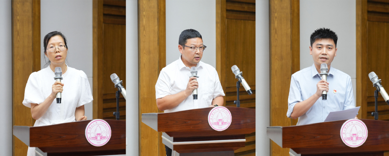 文学院/新闻与传播学院黄大年式教师团队党支部、马克思主义学院本科生政教专业党支部和环境与资源学院环境科学与工程教工党支部在会上做交流发言