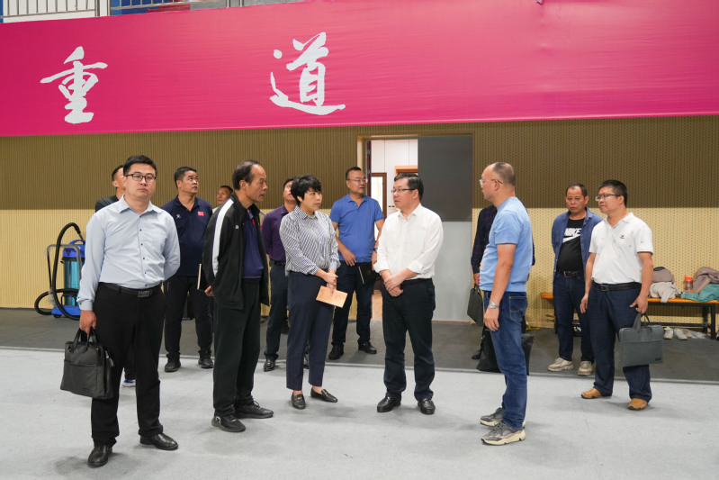 在综合体育馆,贺祖斌实地考察了解体育中心学青会比赛场馆、训练场馆场地布置、器材安装以及体育场馆氛围营造等情况,深入了解目前学青会筹备工作中存在的难点和问题。