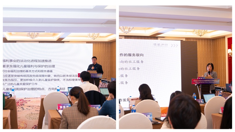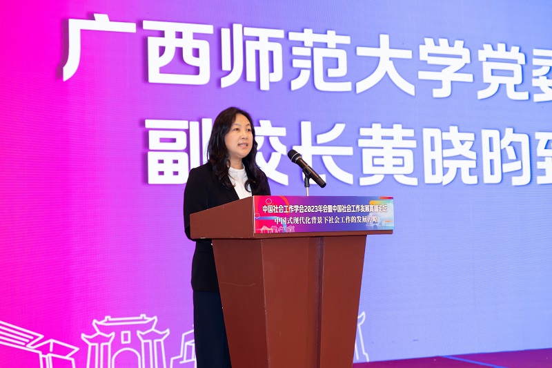 广西师范大学党委常委、副校长黄晓昀致辞。她指出,广西师范大学坚持以人才培养和学科专业建设为抓手,推动社会工作专业获批成为首批国家级一流本科专业建设点,当前已经形成了青少年社会工作、民族社会工作、边疆社会工作三个成熟的人才培养方向,社会工作学科优势突出。