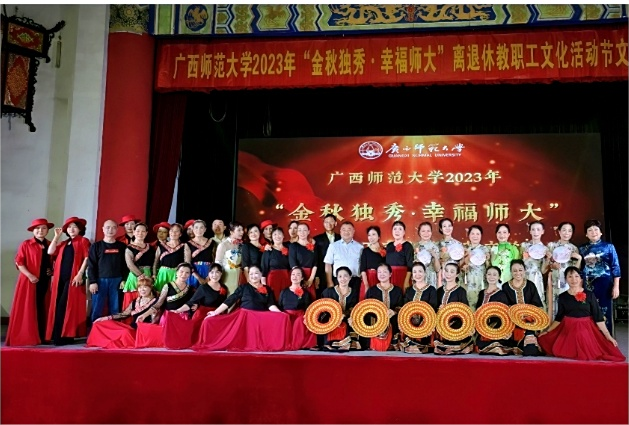 汇演伊始,离退处主要负责人为此次活动致辞,转达了校党委书记贺祖斌、校长孙杰远的亲切问候和祝福,并就2023年文化活动节做了简要总结。他强调举办第五届文化活动节,是学校落实老同志“两个待遇”、实现“文化养老”、建设幸福师大的重要举措,是为我校离退休老同志提供展现才艺、相互学习、增进交流、抒发情感的重要平台。他希望老同志继续发挥正能量,全力支持学校的建设发展,为建设国际知名、教师教育特色鲜明的国内一流大学勠力同心、赓续辉煌,为广西师范大学谱写新的篇章!