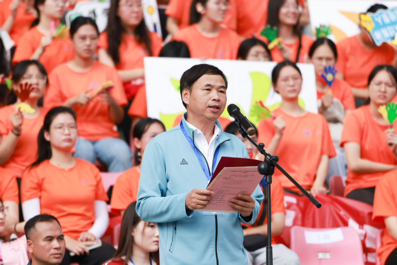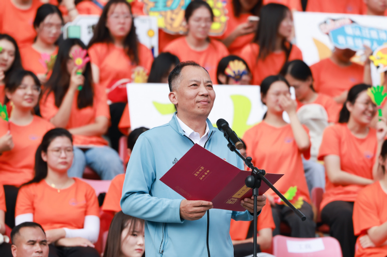 校党委副书记、校长孙杰远宣布广西师范大学第五十四届田径运动会开幕。