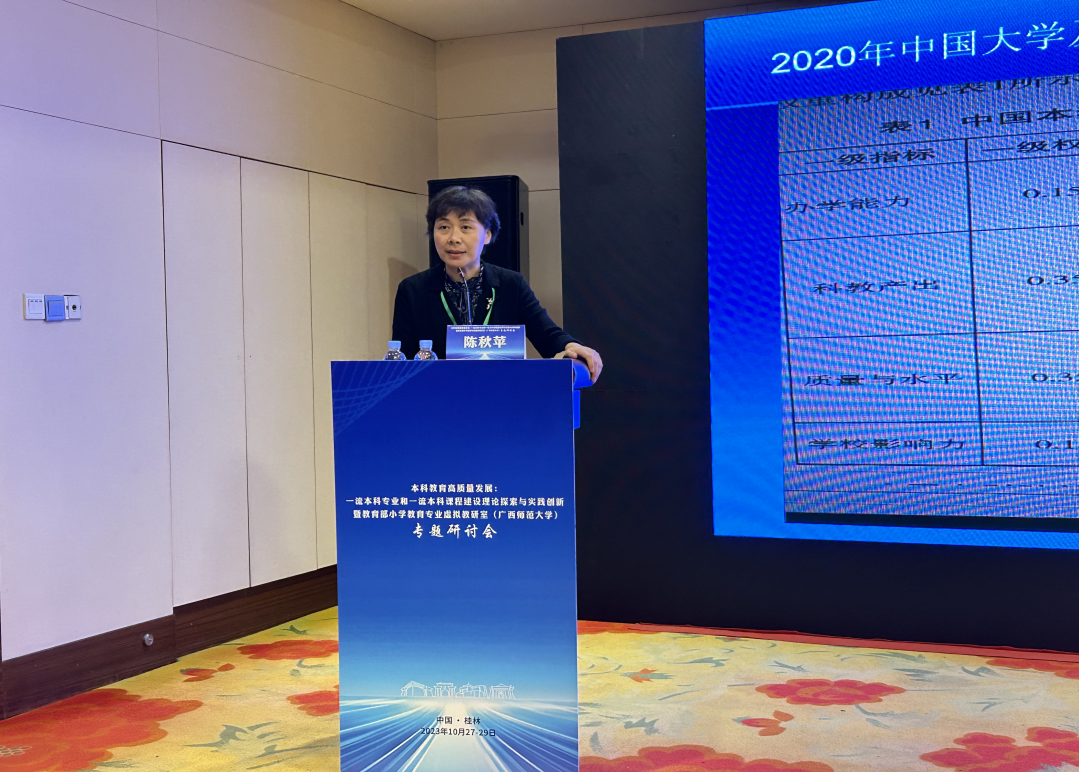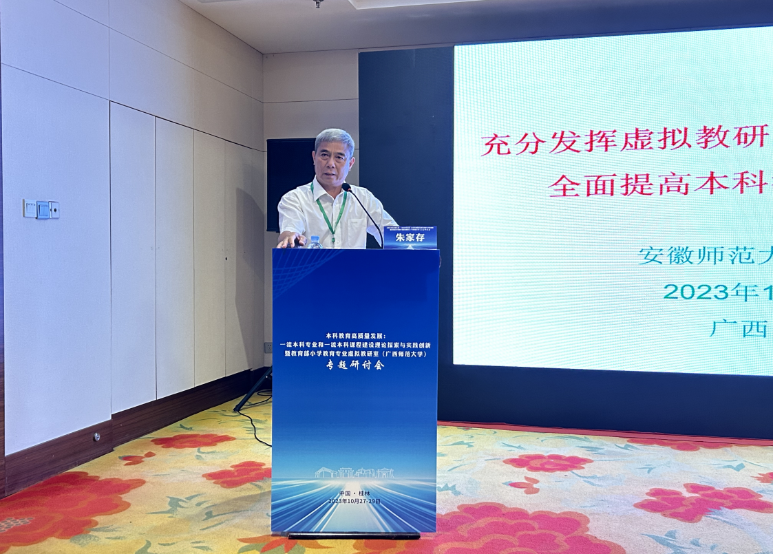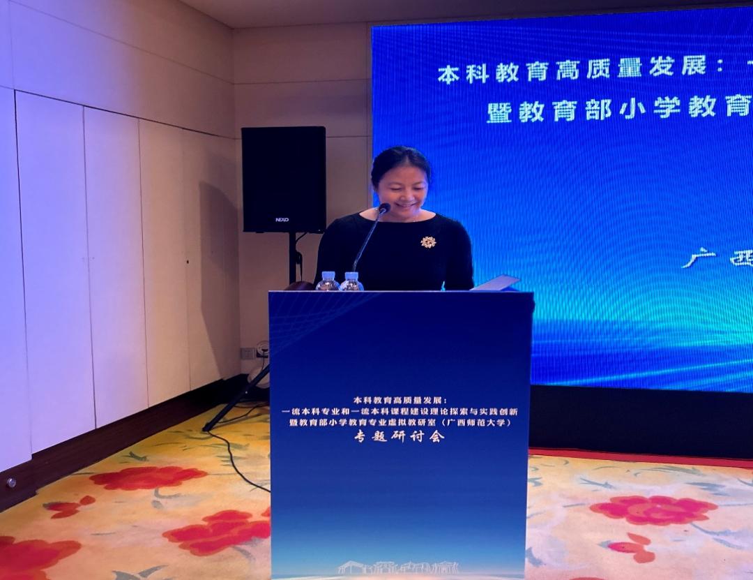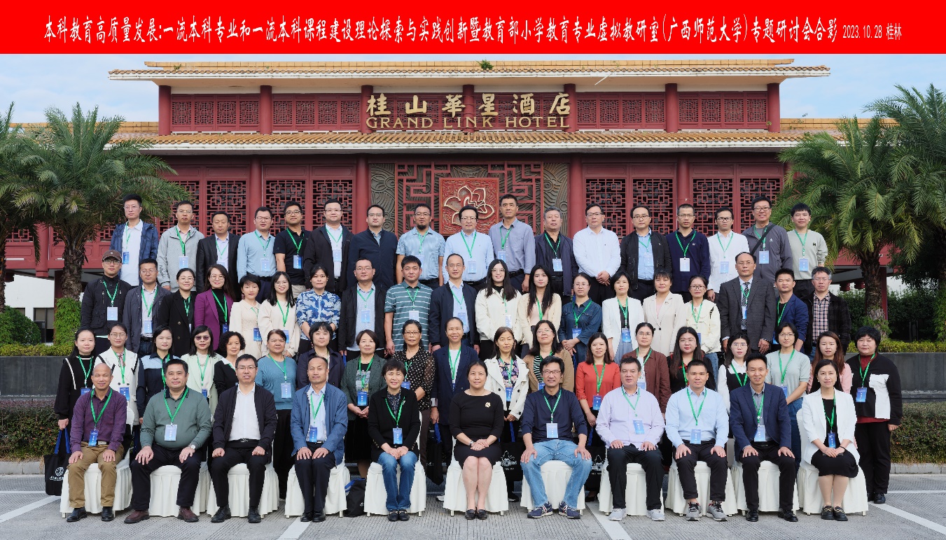 2023年10月27日至29日,以“本科教育高质量发展:一流本科专业和一流本科课程建设理论探索与实践创新”为主题的“教育部小学教育专业虚拟教研室(广西师范大学)专题研讨会”在桂林召开。本次会议由广西师范大学教育学部主办,广西基础教育研究院、教育部教师教育实验教学示范中心联合协办。会议有来自贵州师范大学、内蒙古师范大学、辽宁师范大学、沈阳师范大学等23所合作共建单位的80余名专家学者参加。