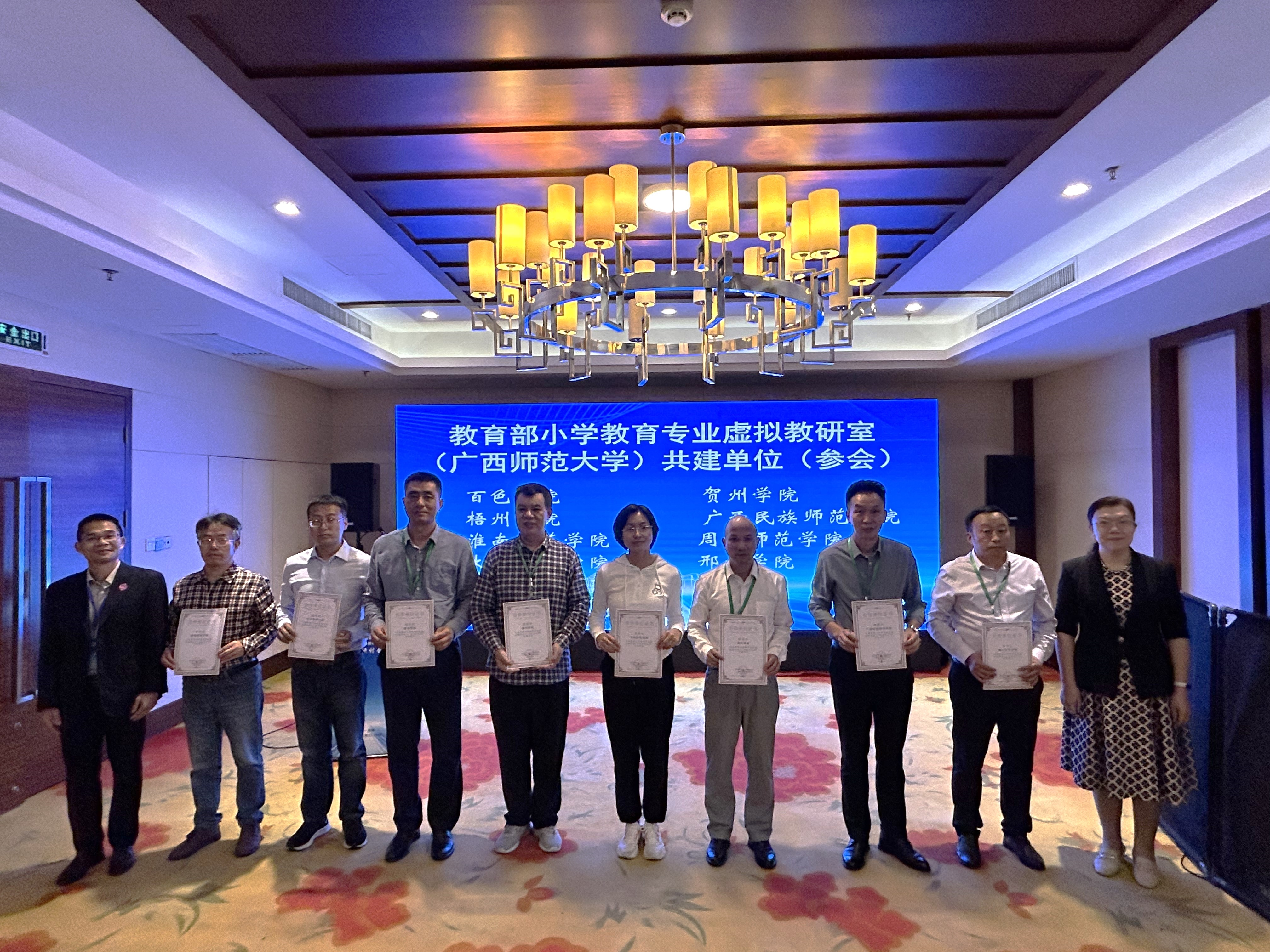 闭幕式上,广西师范大学教育学部李广海教授作总结发言,并阐述了小学教育专业虚拟教研室的下一步工作思路和推进路径。最后,广西师范大学教育学部党委负责人、叶蓓蓓教授为教育部小学教育专业虚拟教研室(广西师范大学)专家指导委员会委员、共建高校分别颁发聘书和共建单位证书。