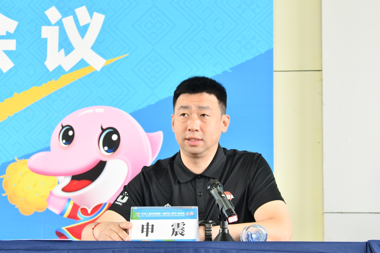 教育部学生体协联合秘书处副秘书长、中国大学生体育协会副主席、本次赛会竞赛委员会执行主任申震发言
