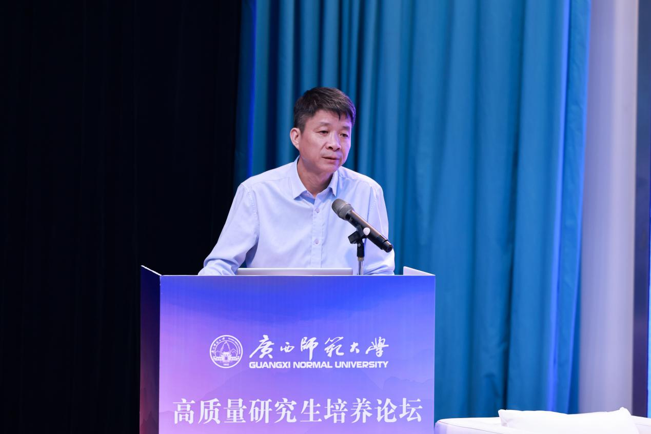 校党委副书记、校长孙杰远代表学校党委行政对本次论坛的顺利召开表示祝贺,对与会的嘉宾、师生表示感谢。他指出高质量研究生培养要具备“三个所为”:一是导师所为,导师要做到有情怀、有智慧、有引领、有共育;二是学生所为,学生要做到有高尚人格、有健壮体魄、有研学体验、有求新意识;三是学校所为,学校要做到爱护学生、完善制度、提升平台、用心服务。只有导师、学生、学校这三种力量的聚合才产生高质量的研究生培养。