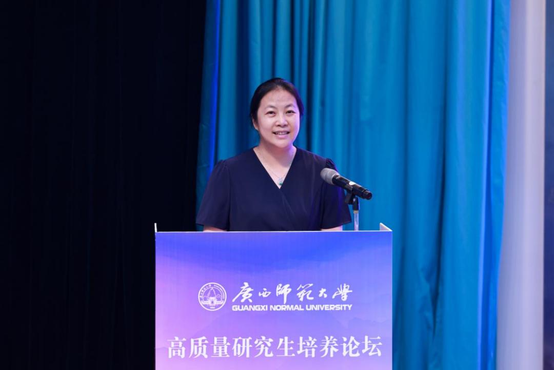 校党委常委、副校长黄晓昀老师对论坛的顺利召开表示衷心的祝贺,她介绍了我校研究生培养工作的发展历程与改革成效,并对我校研究生教育工作提出了殷切希望,强调要深入落实立德树人的根本任务,加强“四有”研究生导师队伍建设,促进研究生培养高质量发展,培养更多能够培养担当民族复兴重任的时代新人。