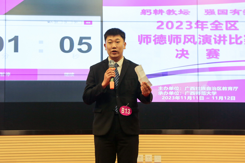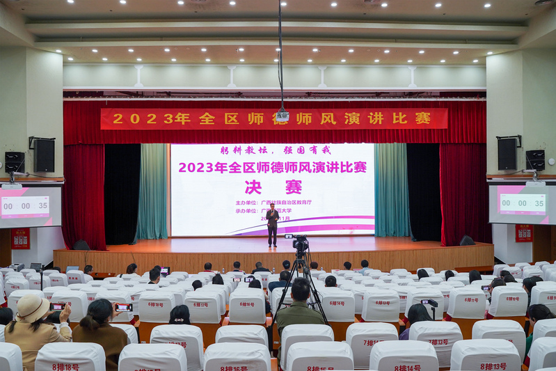 为认真贯彻落实习近平总书记关于教育的重要论述,大力弘扬教育家精神,培养高素质教师队伍,引导教育工作者坚定心有大我、至诚报国的理想信念,深刻认识在教育强国、科技强国、人才强国建设中肩负的光荣使命与重大责任,11月11-12日,由自治区教育厅主办、我校承办的2023年全区师德师风演讲比赛在育才校区举行。