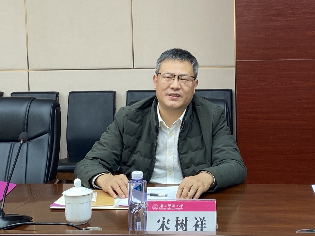 接下来,研究生院、科技处、社科处负责人分别介绍了学校在硕士学位授权单位立项建设和广西一流学科建设、科研项目申报与管理、重点实验室建设及科技成果转化等方面的经验和做法。自由讨论环节,双方就科研激励机制建设、人才培养、成果转移转化和学科建设等方面进行了深入交流。宋树祥副校长在介绍我校相关工作经验时强调,一是要强化顶层设计和整体谋划,制定核心指标;二是要发掘学校自身特色,对外拓展,积极与企业对接交流;三是要加强内涵建设,注重人才引进与培养,积极与人事部门协调沟通。