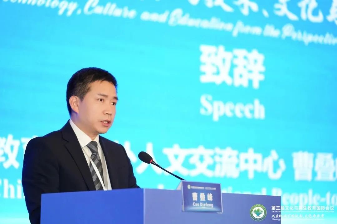 教育部中外人文交流中心曹叠峰副主任最后致辞,他全面阐释了中外人文交流的丰富内涵、工作领域及近年来的有关重要政策与实践,强调教育是人文交流的基础领域,加强教育领域的中外人文交流,对于促进多元文化共生与发展,践行全球文明倡议,推动构建人类命运共同体具有十分重要的意义。希望本次会议就这一问题能够产生深入交流、形成重要共识,特别是要为人工智能教育和文化发展带来新的思考和智慧。