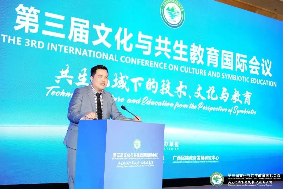 2023年11月17日至19日,第三届文化与共生教育国际会议在广西桂林举行。本次大会由广西师范大学教育学部、广西民族教育发展研究中心主办,来自国内外38所高校和基础教育学校的200余名专家学者、教师和硕博研究生参会。会议主题为“共生视域下的技术、文化与教育”,与会代表围绕“从共生出发——人工智能时代之教育探究”“人工智能背景下的文化转型及其教育因应”和“自然与人文共生教育的理论与学校课程实践”等重要议题,通过主旨报告、分论坛报告、圆桌沙龙等形式展开深入交流与讨论。