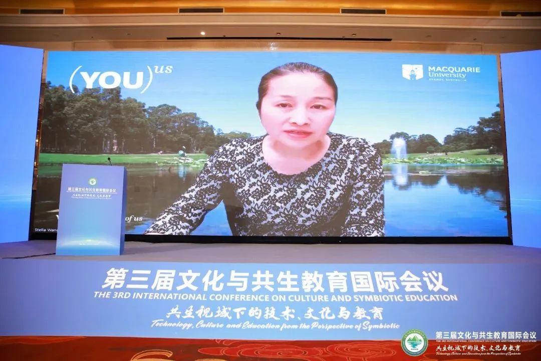 澳大利亚麦考瑞大学国际部大中华区主任Stella Wang发表致辞,她在广西师范大学与麦考瑞大学作为国际合作伙伴的框架内阐述了关于国际教育与合作的看法,认为国际教育的本质不仅在于促进学生与不同文化的互动,同时还作为一种交流共生教育的最佳方式,发展教育的共同理解,巩固共生教育原则的承诺。