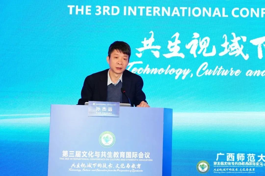 广西师范大学孙杰远教授在开幕式上致欢迎辞,他在致辞中充分肯定了本次会议及其主题的重大意义和时代前沿性,认为共生是人类文明进步的标识,文化与共生教育日益成为当下及未来教育的重要选择。特别表示,广西师范大学长期致力于文化与共生教育研究,愿意为所有致力于相关研究的海内外学者提供学术交流的平台,并通过各种形式推进这一重大问题研究的深化与创新。