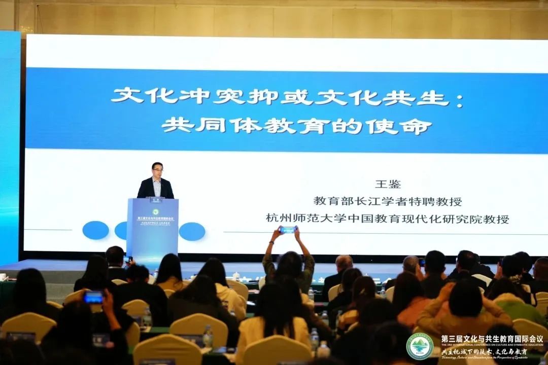 杭州师范大学王鉴教授在报告中强调,当今世界存在文化冲突和文化共生两种声音,文化共生是文化建构的过程,是人类文化共处共生的价值取向。教育的任务是承认与尊重文化多元为基础,建构与发展文化共生为目标。同时指出,中国对共同体教育的探索包括人与自然和谐共处的共同体理论、铸牢中华民族共同体意识理论和人类命运共同体理论,这些都可以在共生教育框架下加以认识和阐发。