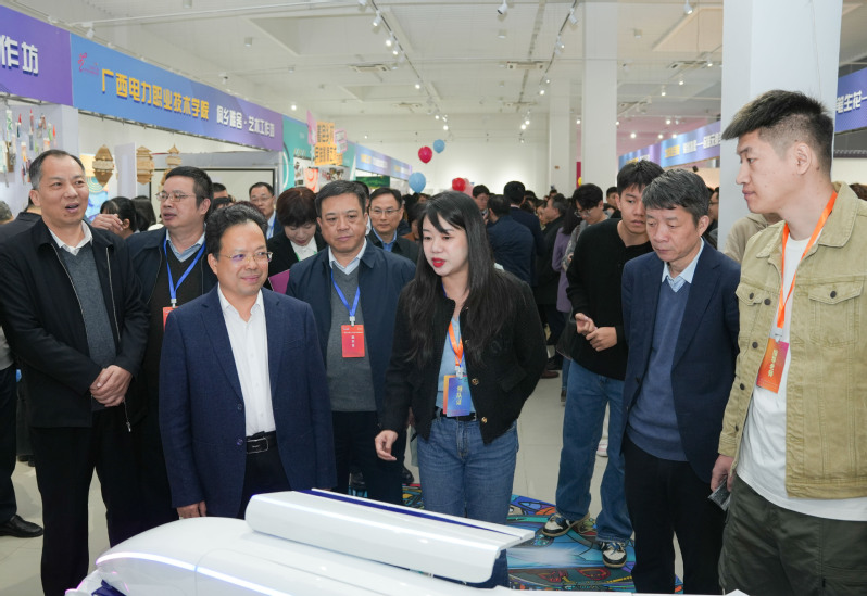 展演期间,学校党委副书记、校长孙杰远,校党委副书记旷永青等校领导共同陪同自治区教育厅副厅长伍锦昌,自治区教育厅体卫艺处处长万锋锋等共同走访了部分高校的工作坊。