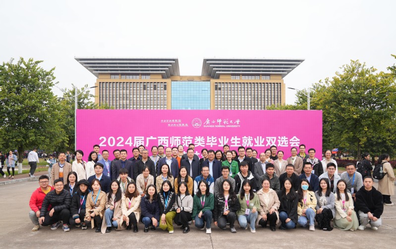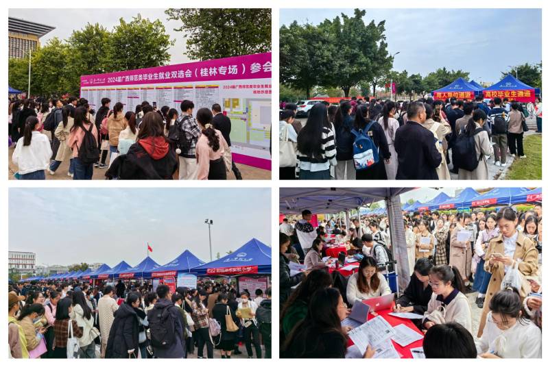 为深入学习贯彻党的二十大精神,落实党中央、国务院“稳就业”“保就业”决策部署,抢抓毕业生求职关键期,为师范类毕业生提供广阔的就业平台,11月25日,由自治区教育厅、自治区人社厅、自治区国资委主办,广西师范大学承办2024届广西师范类毕业生就业双选会(桂林专场)在我校雁山校区图书馆成功举办。自治区教育厅二级巡视员、高校学生处处长汪维、自治区教育厅广西高校毕业生就业创业指导中心副主任吴桂彬现场指导工作,校党委书记贺祖斌亲切地向毕业生了解投简历的情况,并与用人单位深入交流。学工部(处)、研工部主要负责人以及各学院(部)分管学生工作的党委副书记、毕业班辅导员均到场参会。