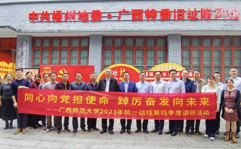 为深入贯彻党的二十大精神,全方位展示中国共产党领导的多党合作和政治协商制度的优势与实践成果,不断增强学校民主党派、统战团体的政治认同、思想认同、理论认同、情感认同。12月14日至15日,我校组织各民主党派、统战团体负责人赴广西梧州市以“同心向党担使命,踔厉奋发向未来”为主题,召开统一战线第四季度调研和座谈会。校党委书记贺祖斌、校党委副书记旷永青参加会议并与各民主党派、统战团体负责人深入交流。
