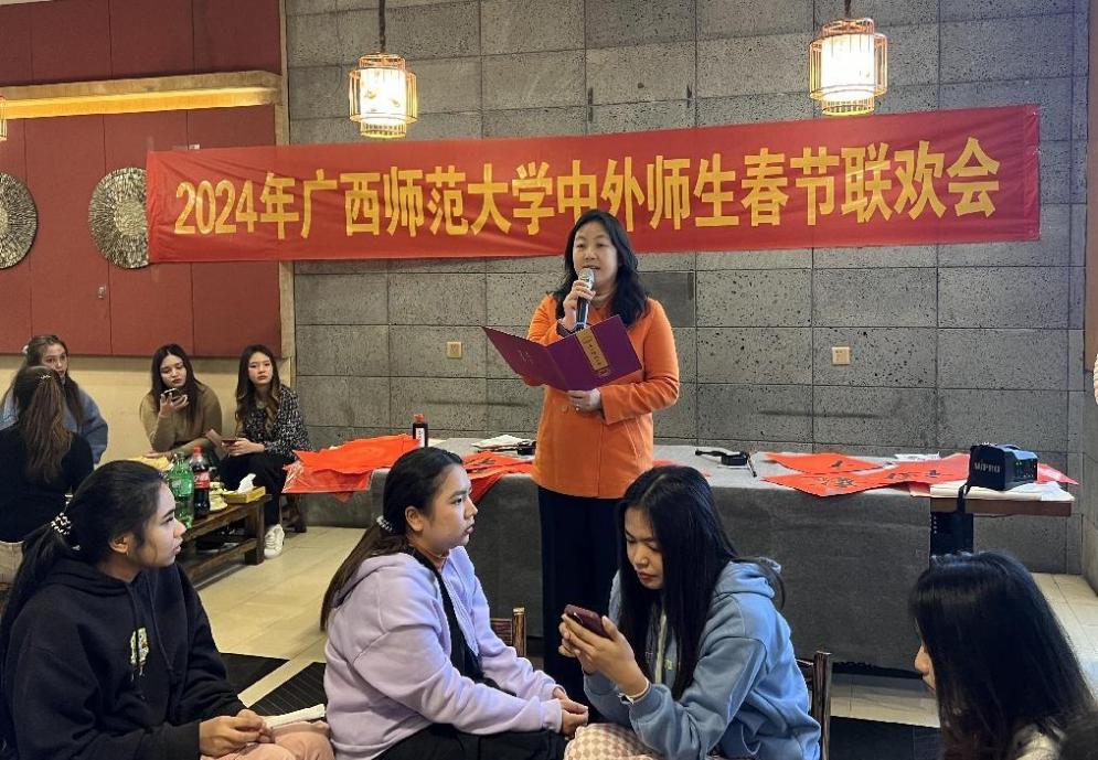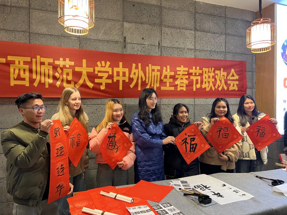 春节是中华优秀传统文化的重要体现,它承载着丰富的文化内涵和价值。此次活动旨在让我校外籍师生沉浸式地体验中国春节文化,不仅增强了他们对学校的归属感,为远离家乡的外籍师生带来了学校大家庭的温暖,帮助他们更好地融入广西师大,同时也让他们切实感受到了中华文化的魅力,在民俗活动中感知传统节日,在感知传统节日中理解中国。