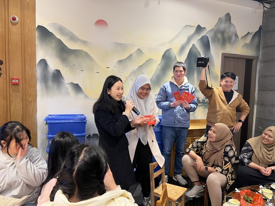 最后,黄晓昀副校长为在场的外籍师生送上了新春礼包和新年祝福。在一片欢乐温馨的气氛中,中外师生春节联欢会活动圆满结束。