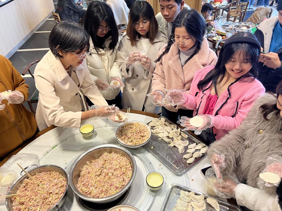 在包饺子体验环节,老师们现场介绍了饺子的寓意,并教大家包饺子的技巧。留学生们有模有样地包起了饺子,他们纷纷拿出手机,迫不及待地与朋友和家人分享自己的成果。“这是我在中国过的第一个新年,今天了解了春节的习俗,还体验了中国书法和包饺子,非常有趣。”来自瑞典的留学生高海薇说。