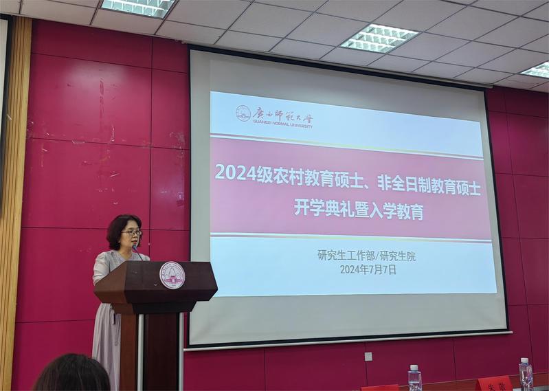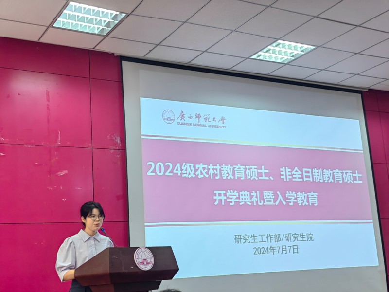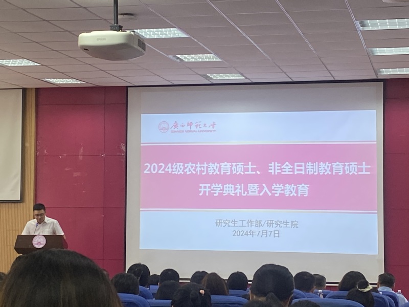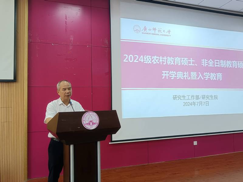 7月7日上午,我校2024级农村教育硕士、非全日制教育硕士开学典礼在育才校区第二理科楼111多功能报告厅举行。副校长李先贤教授,研究生工作部/研究生院相关领导、干部,各农村教育硕士和非全日制教育硕士培养单位分管研究生教育的副院长,研究生导师代表,辅导员、教学秘书以及2024级农村教育硕士、非全日制教育硕士参加了开学典礼。研究生院分管研究生培养工作的副院长主持典礼。